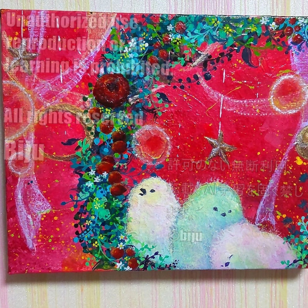 #art #アクリル画 #小鳥 #ことり #アナログ画 #赤 #リース