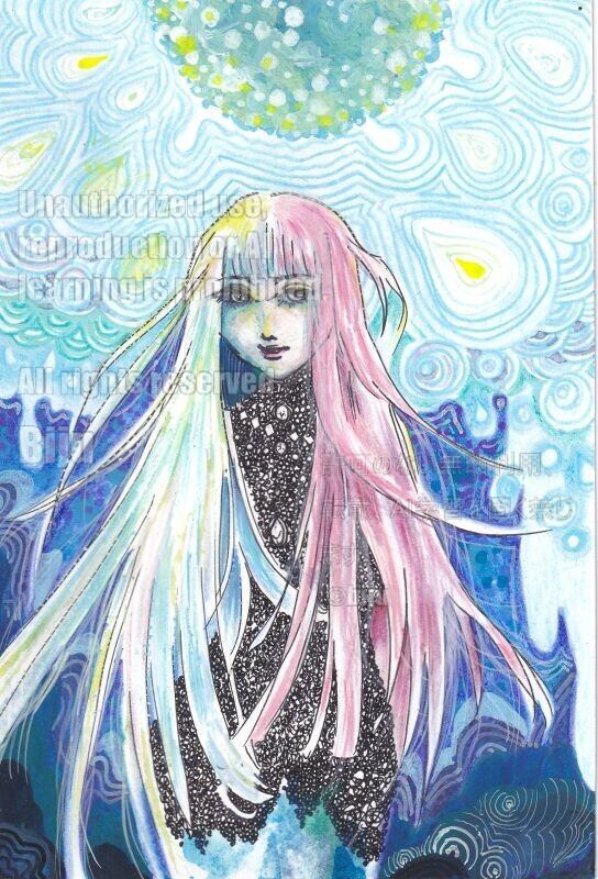原画【冬の月】水彩画 肉筆原画